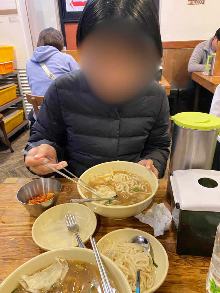 食後はロッテ百貨店などを散策し、明洞餃子へ。