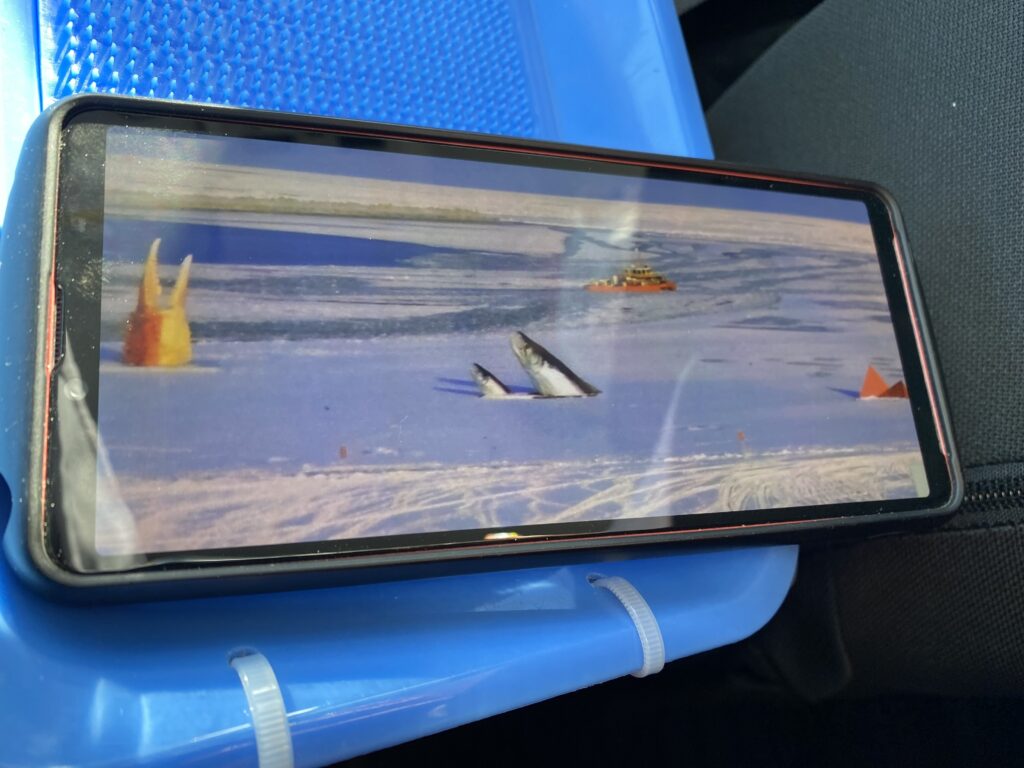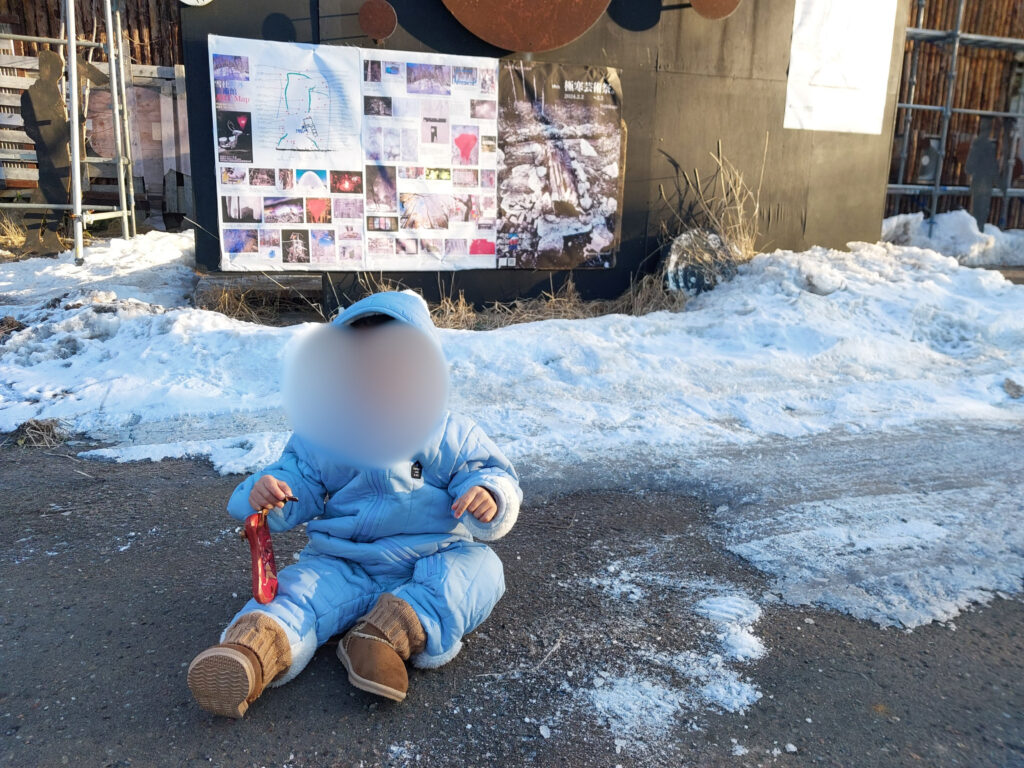 運転手さんがカニの爪と鮭のオブジェが流氷の中に浮かんでた頃のレアな写真を見せてくれました。