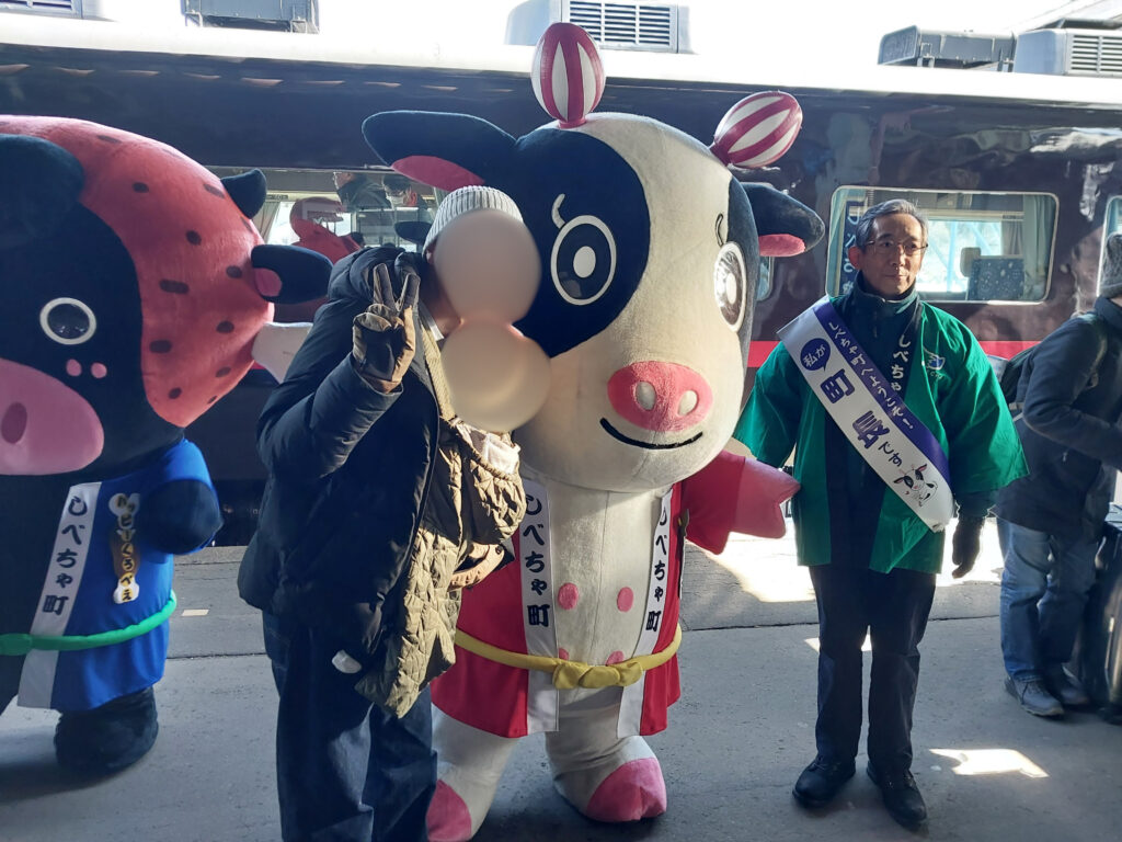 終点の標茶駅到着。なんと町長さんがお出迎え。