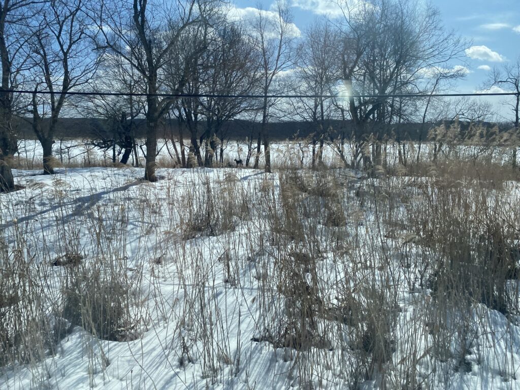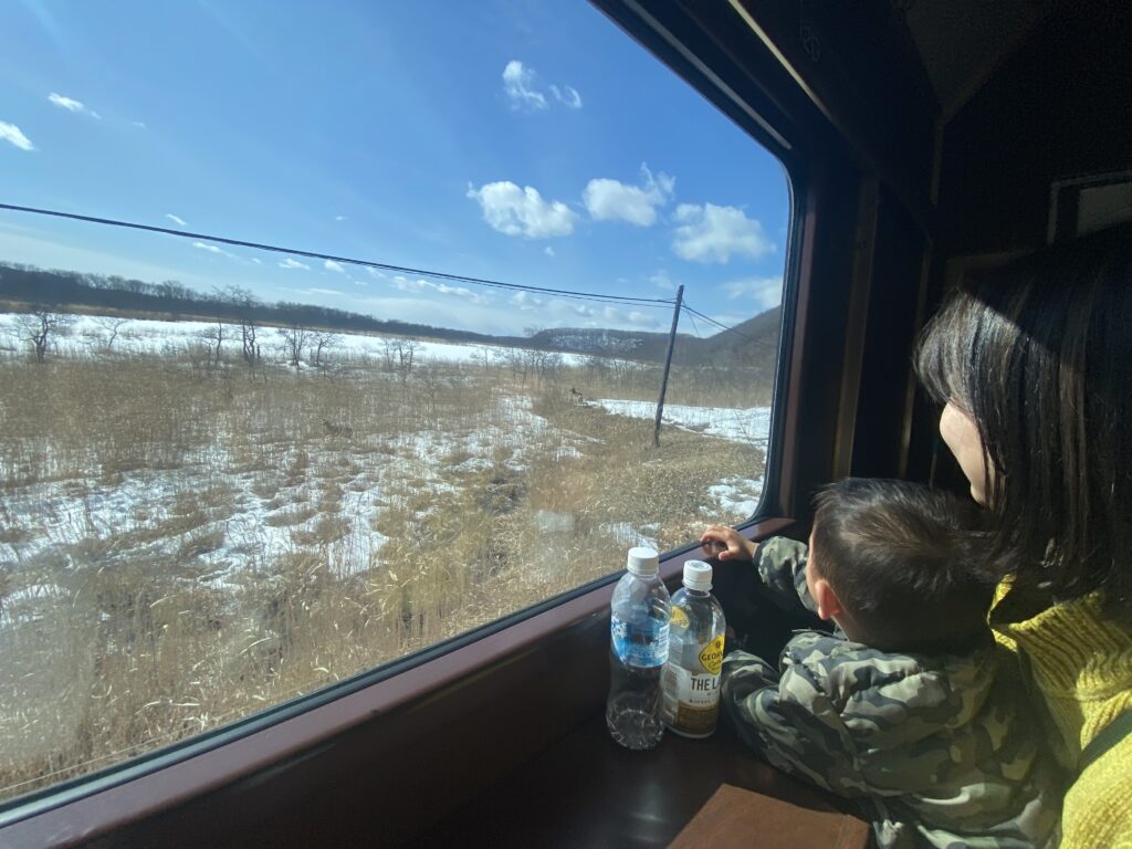・車窓から鹿などの野生動物が見える