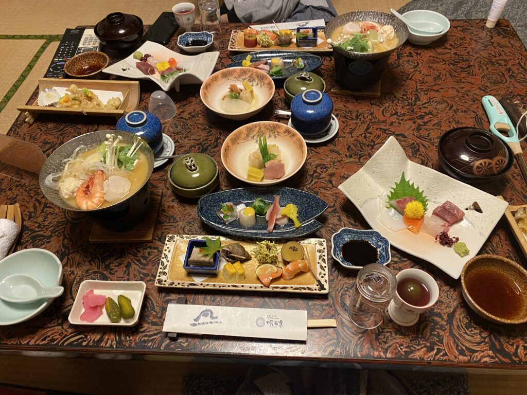 宿泊は創業以来400年守り続けている「源泉掛け流し温泉」と厳選された鳥取の大地と日本海が産んだ食材を部屋食でいただける明石家へ。