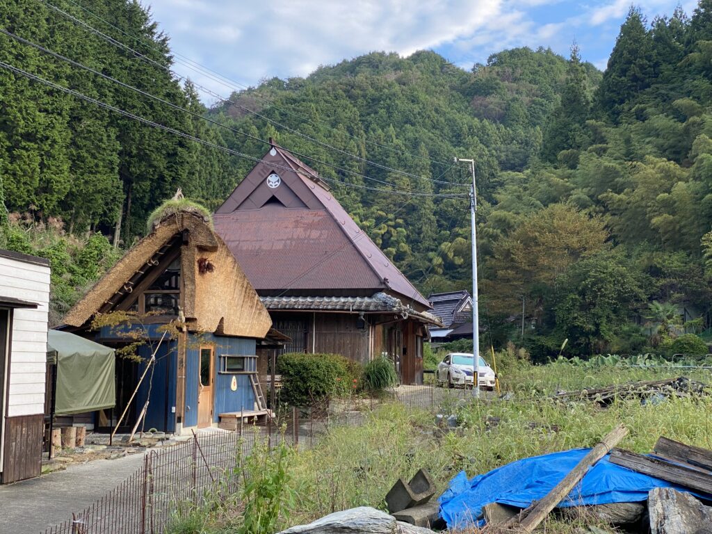 大自然の中にポツンとある外観もおしゃれな古民家で、中に入るととても開放的で温かみのあるトタン茅葺に屋根がありました。